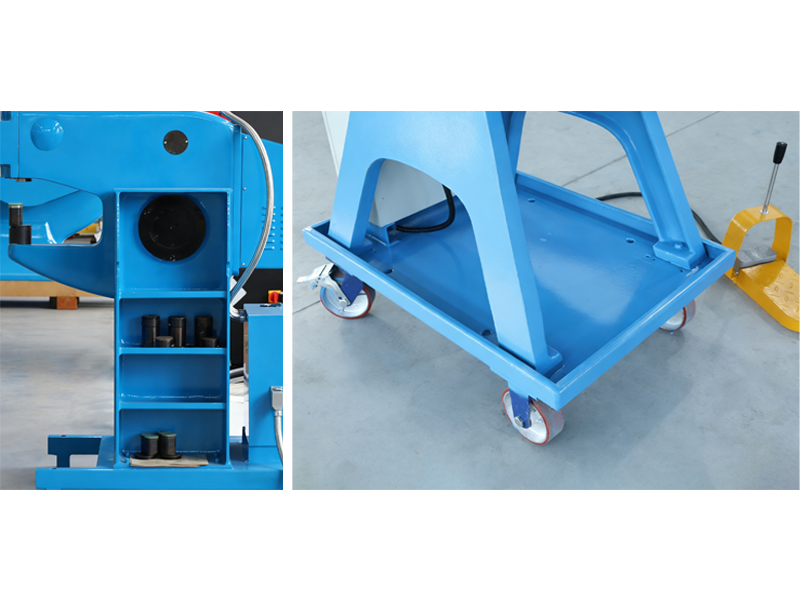 वैकल्पिक ओवरसाइज़ कैबिनेट स्टोर तेजी से बदलाव के लिए मर जाते हैं और स्पेयर पार्ट्स। घुमावदार कास्टर त्वरित स्थानांतरण और लॉकिंग को सक्षम करते हैं; कास्टर क्षेत्र ऑन-साइट टूलिंग स्वैप के लिए अस्थायी भंडारण के रूप में दोगुना होता है।