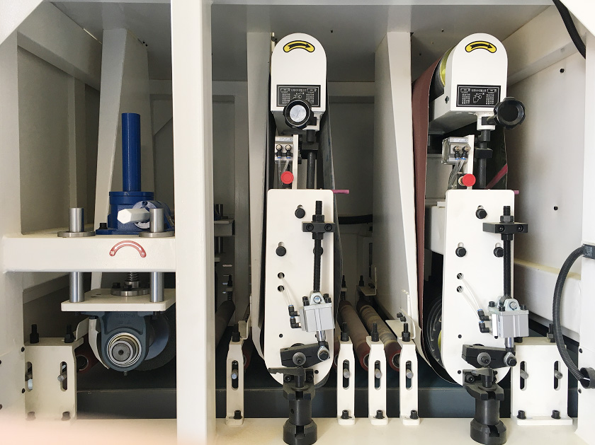 मशीन दो चौड़ी सैंडिंग बेल्ट इकाइयों से लैस है। पीसने वाले रोलर्स द्वारा संचालित, सैंडिंग बेल्ट स्लैग कणों, ऑक्साइड पैमाने, बड़े बर्स और वर्कपीस सतह से अन्य दोषों को हटाने के लिए उच्च गति से घूमते ह इसमें एक पॉलिशिंग रोलर